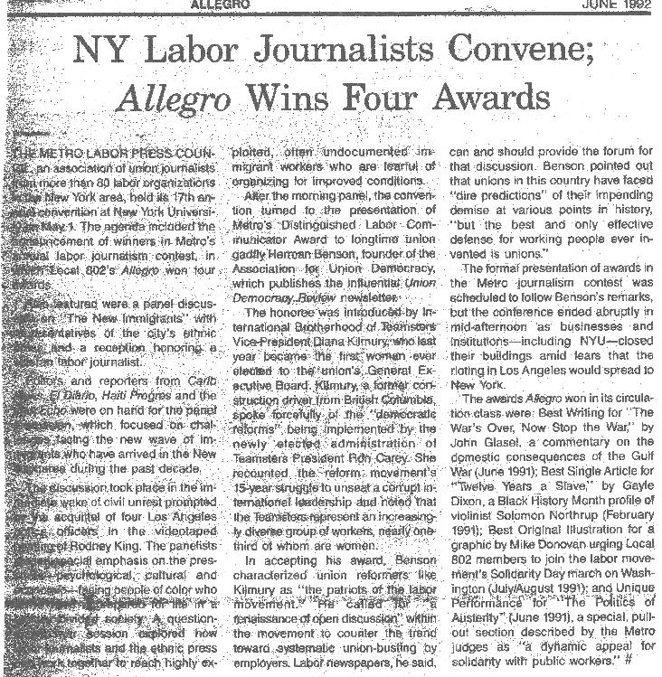 All Allegro articles are reprinted with the permission of Local 802 AFM,